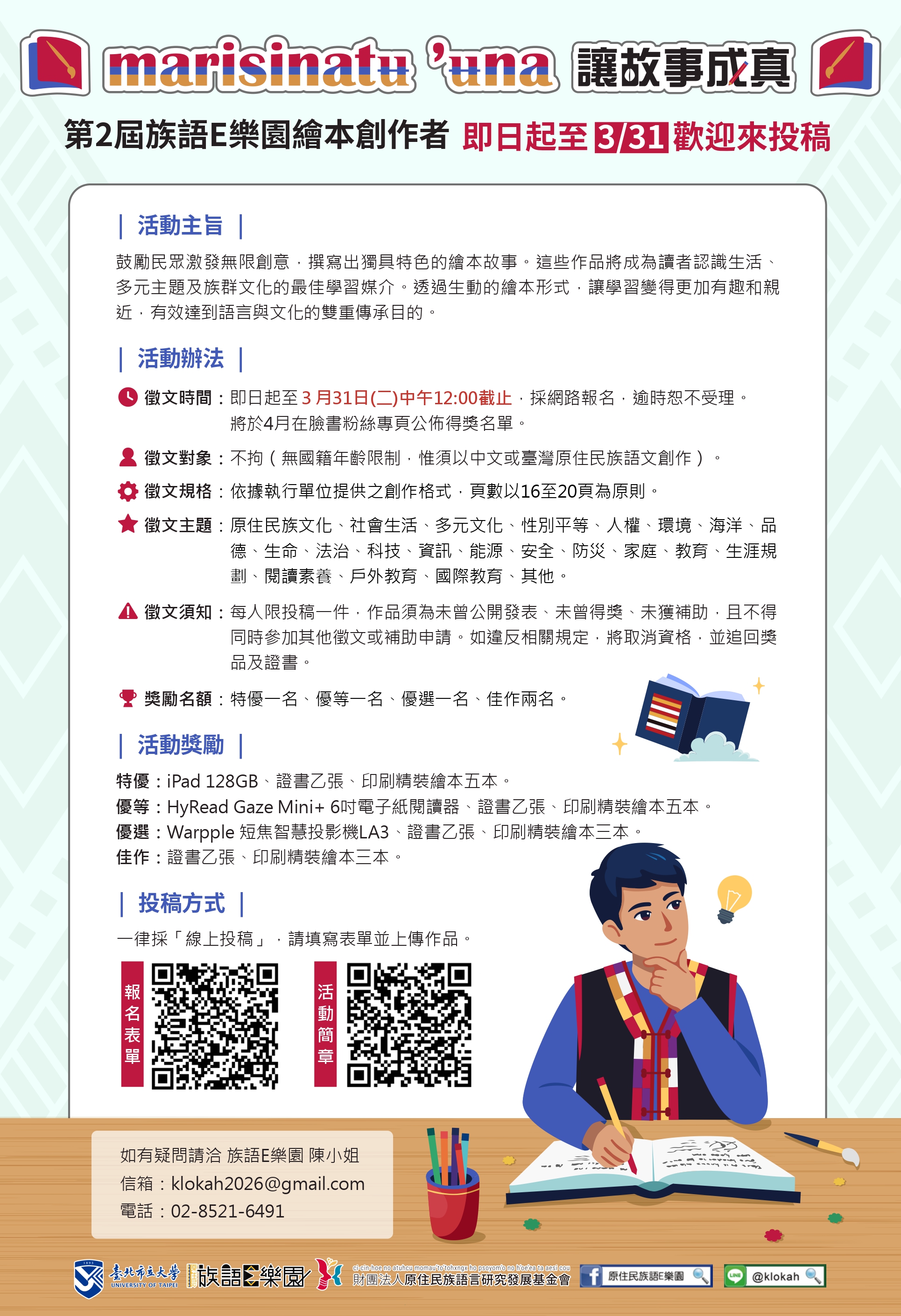 2026年原住民族語E樂園繪本腳本徵稿活動